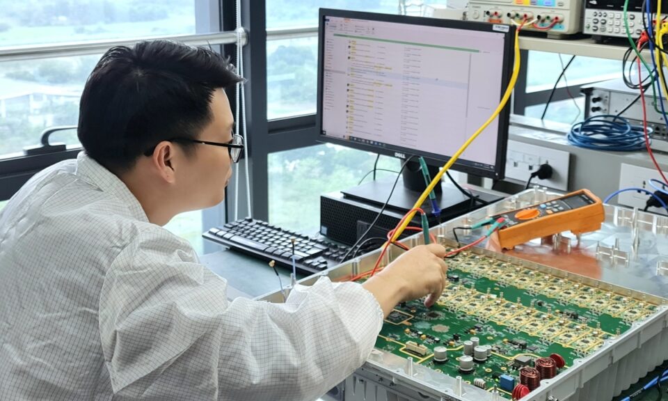 Kỹ sư đang thử nghiệm trạm gốc 5G do Việt Nam phát triển. Ảnh: Trọng Đạt