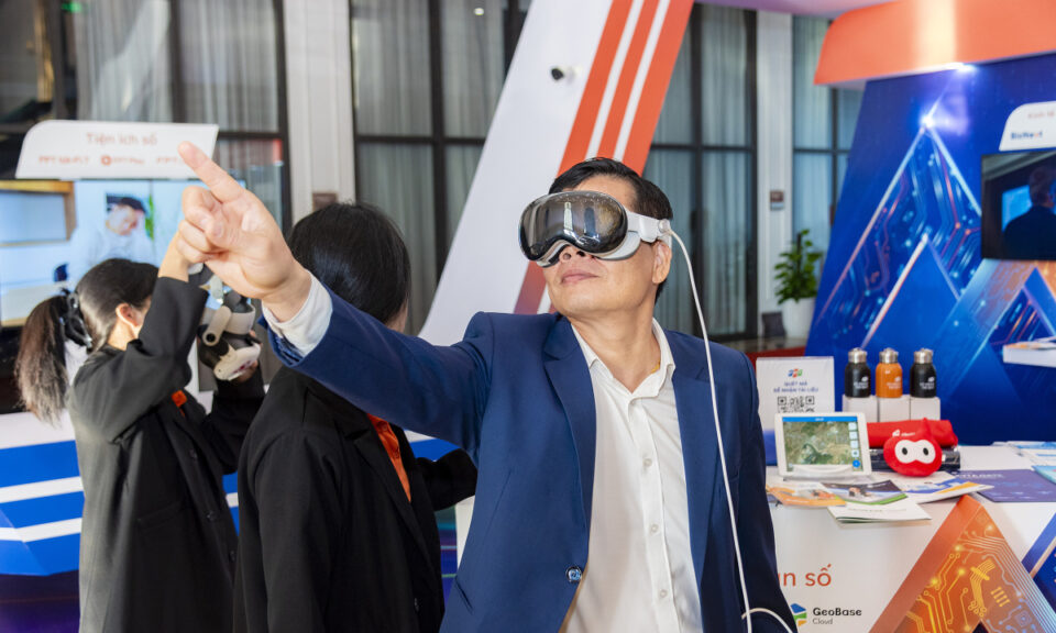 FPT trình diễn hệ sinh thái giải pháp công nghệ tại gian hàng triển lãm của sự kiện. Ảnh: Xuân Hoa