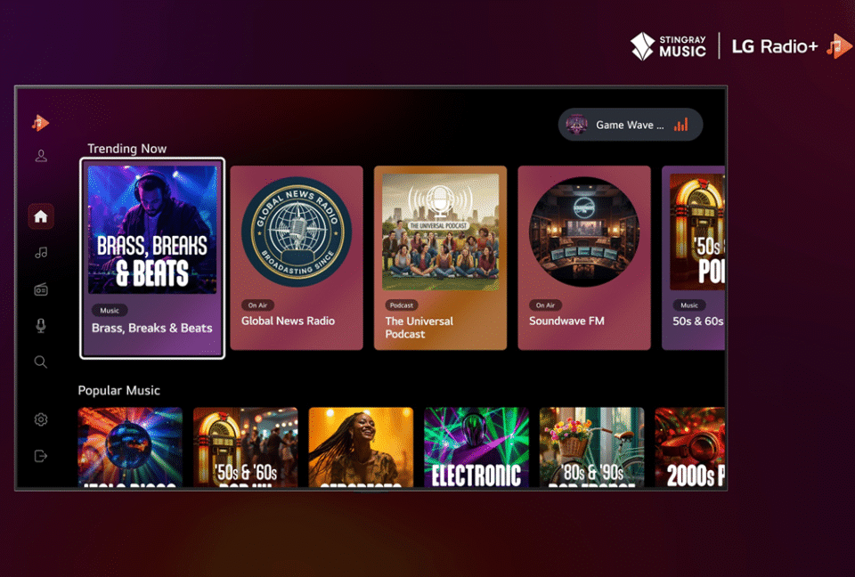 SEOUL, ngày 21 tháng 102025 — LG Electronics (LG) đã hợp tác với Stingray Music để nâng cấp dịch vụ truyền phát âm thanh hỗ trợ quảng cáo miễn phí, LG Radio+. Có sẵn trên LG Smart TV chạy webOS 6.0 trở lên ở Mỹ, Anh, Pháp, Đức, Ý, Tây Ban Nha và Hàn Quốc, LG Radio+ sẽ cung cấp hơn 200 kênh âm nhạc và hàng trăm nghìn bài hát phù hợp với thị hiếu đa dạng của người nghe. Có thể truy cập thông qua các trang LG Content Store, Ứng dụng và Cổng thông tin âm nhạc trên webOS, ứng dụng này có giao diện người dùng trực quan mới giúp việc khám phá âm nhạc, podcast và chương trình radio trở nên dễ dàng.