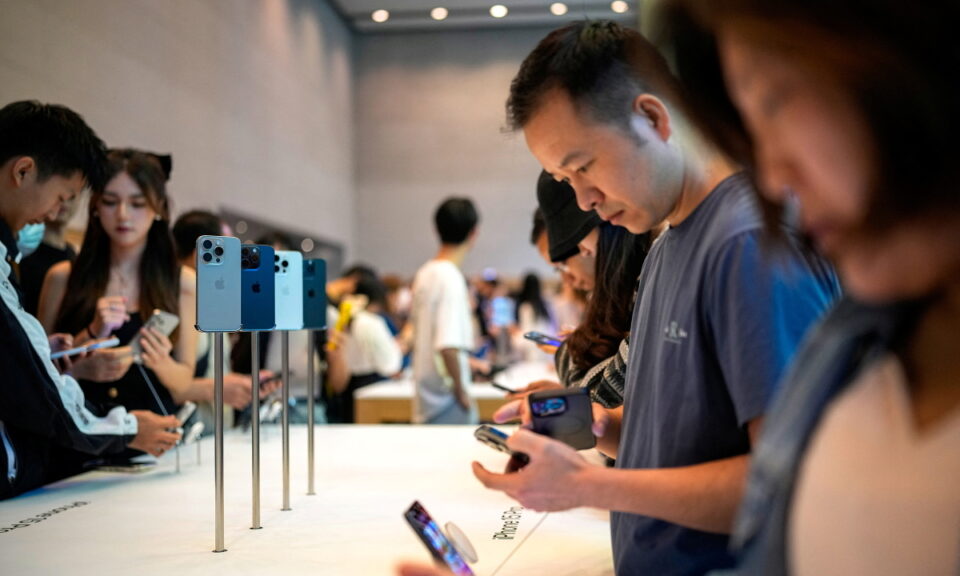Người dùng trải nghiệm iPhone tại một Apple Store ở Thượng Hải. Ảnh: Reuters