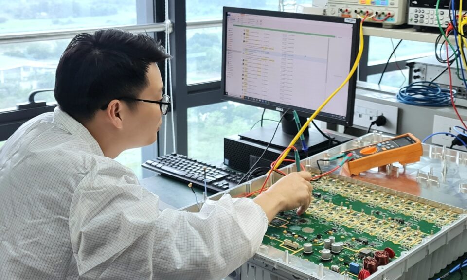 Kỹ sư đang thử nghiệm trạm gốc 5G do Việt Nam phát triển. Ảnh: Trọng Đạt